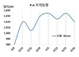 FOB Korea 1020달러로 15달러 하락 … PTA 하락 영향