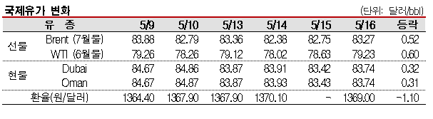 한편, S&P Global과 UBS 등 주요 분석기관은 6월1일 OPEC(석유수출국기구)+ 회의에서 현행 감산 정책의 연장이 결정될 가능성이 높다고 평가하고 있다. (강윤화 책임기자)