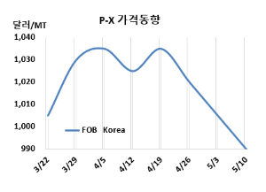 FOB Korea 990달러로 15달러 하락 … 아이소머 M-X, PTA도 하락