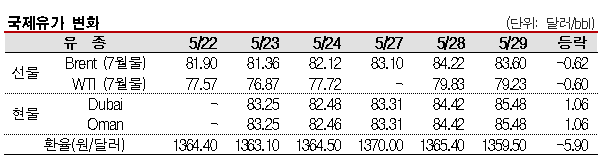 5월29일 국제유가는 미국의 금리 인하 지연 및 휘발유 수요 둔화 우려로 하락했다.