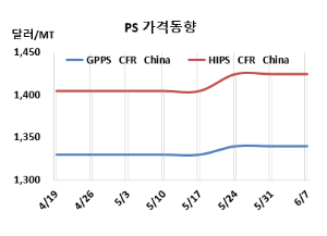 GPPS, CFR China 1340달러로 변동없어 … 운임상승에 마진 감소