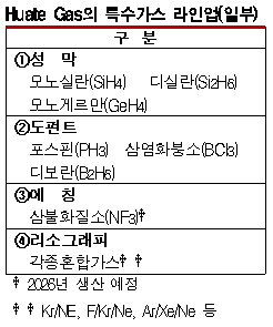 표, 그래프: <Huate Gas의 특수가스 라인업(일부)>