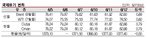 6월12일 국제유가는 미국 물가지표 둔화로 상승했다.