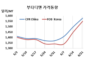 [석유화학] 부타디엔, 공급부담 커지며 하락세 | 2025-09-24 | ||