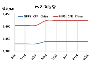 GPPS, CFR China 1340달러로 변동없어 … 중국 내수는 하락세 지속