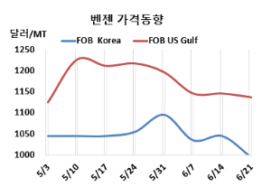 FOB Korea 995달러로 50달러 하락 … 다운스트림 SM은 하락도 영향