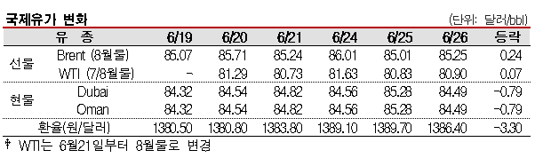 6월26일 국제유가는 중동의 지정학적 리스크 고조로 상승했다,