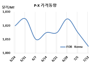 FOB Korea 1005달러로 10달러 하락 … 다운스트림 PTA도 하락
