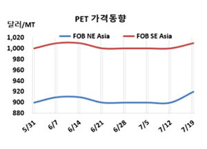 CFR FE Asia 920달러로 20달러 하락 … 원료 MEG, PTA도 하락세