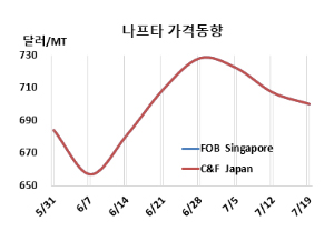 C&F Japan 700달러로 7달러 하락 … 국제유가와 함께 하락세 지속