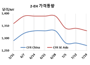 CFR China 1065달러로 45달러 하락 … 2-EH, 가소제 DOP도 떨어져