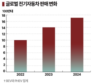 다만, 글로벌 전기자동차 판매대수 증가율은 2022년 약 60%에서 2023년 30% 이상, 2024년 약 20%로 둔화하고 있다.