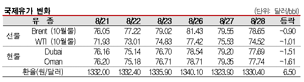표, 그래프: <국제유가 변화> <화학저널 2024/08/29> |