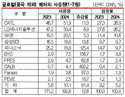 중국 제외 시장에서도 점유율 하락 … CATL이 26.9%로 1위 탈환