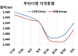 [석유화학] 부타디엔, 중국 부진에 결국 내려가 | 2025-09-17 | ||