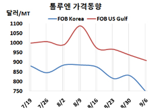 [석유화학] 톨루엔, 가솔린 부진에 약세… | 2025-09-24 |