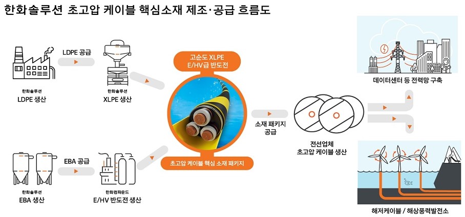 한화솔루션은 주력제품인 초고압케이블용 절연 소재 XLPE(Cross Linked-Polyethylene)와 E/HV급 반도전을 패키지로 글로벌 사업을 확대할 계획이다.