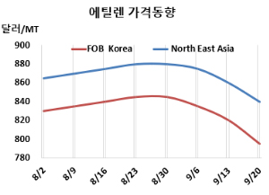 CFR NE Asia 840달러로 20달러 하락 … 다운스트림 가동률 감소 예상