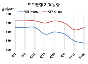 [석유화학] 프로필렌, 연휴 앞두고 약세 전환… | 2025-10-01 | ||