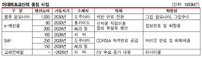 이데미츠코산, 4대 중점사업 8000억엔 투자 … e-메탄올 28만톤 생산