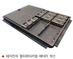 테이진은 배터리 박스 하부 보호판용 소재로 열가소성 유리섬유 복합소재 솔루션도 강화하고 있다.