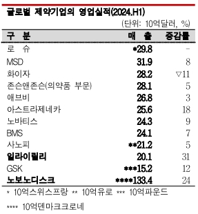 마찬가지로 GLP-1을 보유한 미국 일라이릴리(Eli Lilly)와 노보노디스크가 2024년 상반기 매출이 급증한 것으로 나타난 반면, GLP-1을 보유하지 못한 제약기업 상당수가 고전을 면치 못하면서 비만치료제가 명실상부한 글로벌 제약시장의 게임체인저로 등극했다.