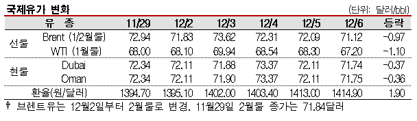 12월6일 국제유가는 OPEC(석유수출국기구)+의 감산 연장 결정에도 하락했다. 국제유가는 OPEC+의 감산 연장 결정에도 공급과잉 우려가 |