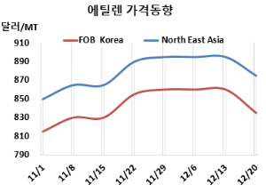 CFR NE Asia 875달러로 20달러 하락 … 1월 물량 충분하다 판단