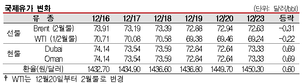 12월23일 국제유가는 미국의 경기지표 부진 영향으로 하락했다. 국제유가는 미국 소비자신뢰지수 급락으로 경기 낙관론에 제동이 걸 |