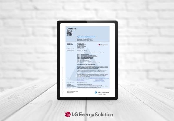 LG에너지솔루션(대표 김동명)이 국내 배터리 생산기업 최초로 자동차 사이버 보안 관리체계(CSMS) 레벨3 인증을 획득했다. |