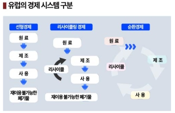 여기서 주목할 점은 순환이라는 개념이 곧 리사이클은 아니라는 것으로, 유럽은 선형경제와 순환경제 중간에 리사이클링 경제를 두고 있을 만큼 다른 개념이다.