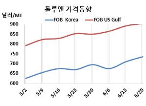 CFR China 735달러로 25달러 상승 … 다운스트림 수요 살아나나