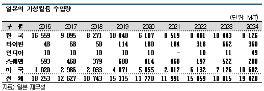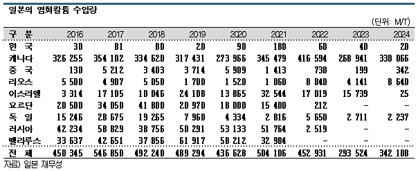 재무성 무역통계에 따르면, 2024년에는 내수가 회복되면서 수입량이 34만2108톤으로 16.6% 증가했다. 다만, 거래가격은