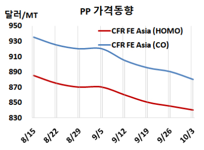 아시아 PP 시세는 10월8일 CFR FE Asia 기준 라피 |