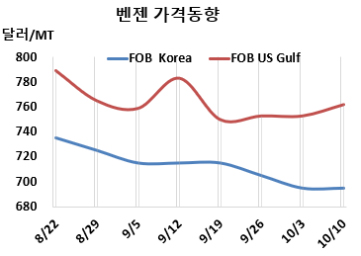 벤젠(Benzene)은 보합세에 그쳤다.