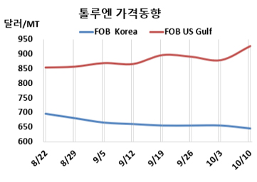 톨루엔, 국제유가 약세‧수요 부진에 “하락”