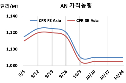 표, 그래프: <AN 가격동향> <화학저널 2025/10/28> |