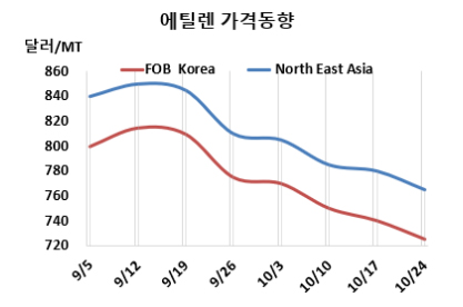 CFR FE Asia 765달러로 15달러 하락 … 공급 증가․ 구매 심리 위축