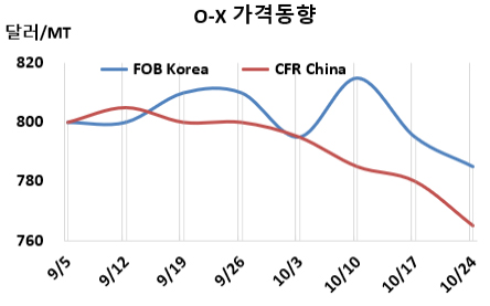 화학뉴스 2025.10.31 O-X(Ortho-Xylene)는 하락했다.