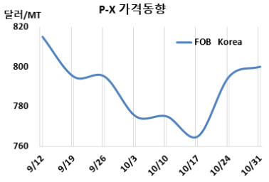 화학뉴스 2025.11.06 P-X(Para-Xylene)는 상승했다.