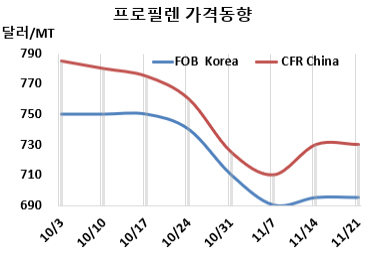| [석유화학] 프로필렌, 5년 6개월 만에 700달러 붕괴 | 2025-11-13 | ||