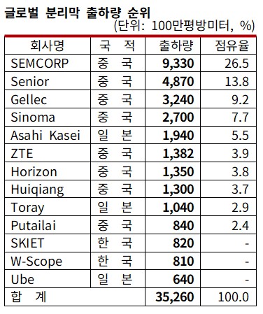 화학뉴스 2025.12.08 글로벌 LiB(리튬이온전지) 분리막 시장은 여전히 중국이 강세다.