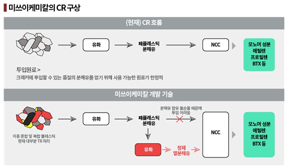 미쓰이케미칼은 신기술 상용화를 통해 그동안 TR 처리했던 이종 혼합 및 복합 플래스틱을 CR 원료용으로 사용 가능할 것으로 기대하고 있다.