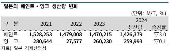 일본은 2024년 MIBK 생산량이 3만8421톤으로 15.6%, 수출량은 2만189톤으로 4.4% 감소했고 내수는 1만8232톤으로 25.3% 급감했다. 매년 3만톤대 초반은 유지하지만 2024년에는 2만톤대마저 붕괴된 것으로 파악된다.