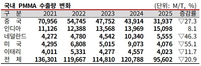 PMMA, 중국 생산 확대에 수출 10만톤 붕괴