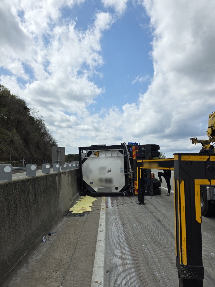 화학뉴스 2026.04.10 4월10일 낮 12시쯤 대구 달성군 논공읍 광주대구고속도로에서 광주 방향으로 달리던 탱크로리가 넘어지는 사고가 났다. |