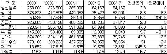 생산확대 불구 수요증가로 수입량 106.4% 늘어 … SM 가격상승 덕 2004년 부타디엔(Butadiene) 시장은 2003년 수요회복에 힙입어 합성고무 시장의 부활과 ABS(Acrylonitrile Butadiene Styrene)의 수요급증으로 생산량을 확대했음에도 불구하고 수급이 타이트해져 수입량이 대폭 증가한 것으로 나타났다.2004년 상반기 가동률이 116.6%로 2003년 말보다 소폭상승에 그친 것은 현대석유화학이 상반기에 1단지 정기보수에 들어갔었기 때문으로 분석된다. 2004년 7월 생산량은 8만2091톤, 가동률은 127.9%로 전월대비 8.8% 증가했고 국내판매도 9.1% 증가했으며 재고가 39.7% 증가한 반면 수입은 41.6%, 수출은 31.1% 감소했다. 그러나 수입량 감소분 4103톤만큼 수출량 감소분 3991톤이 상쇄해 전체 밸런스에는 영향이 없는 것으로 나타났다. 2004년 상반기 부타디엔 생산량은 44만9062톤으로 전년동기대비 8.8%, 수입은 3만6170톤으로 106.4%, 수출은 6만9905톤으로 19.7% 각각 증가했으며 국내판매도 39만1399톤으로 47.3%로 급증해 2004년의 수요강세를 반영하고 있다. 부타디엔 수급타이트는 ABS의 수요강세 영향이 가장 컸으며, SM 가격급등도 영향을 미친 것으로 해석된다. ABS의 부타디엔 원단위는 약 0.18, SM(Styrene Monomer)은 0.6이나 원단위는 소폭의 변동이 가능하기 때문에 고가의 SM보다는 조금 더 저렴한 BD의 사용량을 소폭 확대했기 때문으로 알려졌다.
