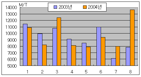 표, 그래프: | BPA 수입량 비교(2004) | <화학저널 2004/10/28> |