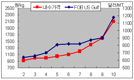 Shell, 10월21일 Force Mejure 선언 … 10월 거래가 kg당 2000원 상회 Shell의 네덜란드 플랜트가 트러블로 공장가동을 중단하면서 10월21일 Force Mejure(불가항력에 의한 공급중단)를 선언해 국내 MEK(Methyl Ethyl Ketone) 가격이 걷잡을 수 없이 상승하고 있다.2003년 하반기부터 시작된 MEK 공급부족은 계속적인 가격상승을 주도했으며 Shell의 결정타로 10월말 국내 MEK 거래가격이 9월초에 비해 500원정도 상승한 kg당 2100-2200원에 형성되고 있지만 워낙 공급이 부족해 2400-2500원 대에도 거래가 이루어지는 것으로 조사됐다. Shell의 네덜란드 MEK 플랜트는 생산능력이 8만5000톤으로 에틸렌(Ethylene) 190만톤 크래커가 Steam Lose로 인해 10월19일부터 가동을 중단한데 따라 생산을 하지 못하고 있는 것으로 알려졌다. 이와 함께 9월1일에는 Sasol의 남아프리카 에틸렌 크래커에서 폭발사고가 발생해 MEK 생산에도 차질을 빚었으며 독일 MEK 플랜트도 10월22일부터 3주간 정기보수에 들어가 당분간 세계적인 수급타이트가 지속될 전망이다. 국내 MEK 수요는 8만-8만2000 가량으로 국내 생산기업이 없어 전량 수입하고 있는데 2004년 9월 기준으로 전체 수입량은 2003년에 비해 오히려 5-6% 늘어났지만 일부 플레이어들이 추가 가격상승을 예상해 공급을 제한하는 움직임을 보임에 따라 시장은 일시적인 공급부족 현상이 일고 있는 것으로 판단된다.