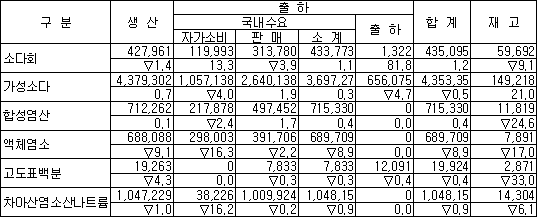 가성소다 생산은 사상 4번째로 제조·판매 모두 호조를 보이고 있다.
